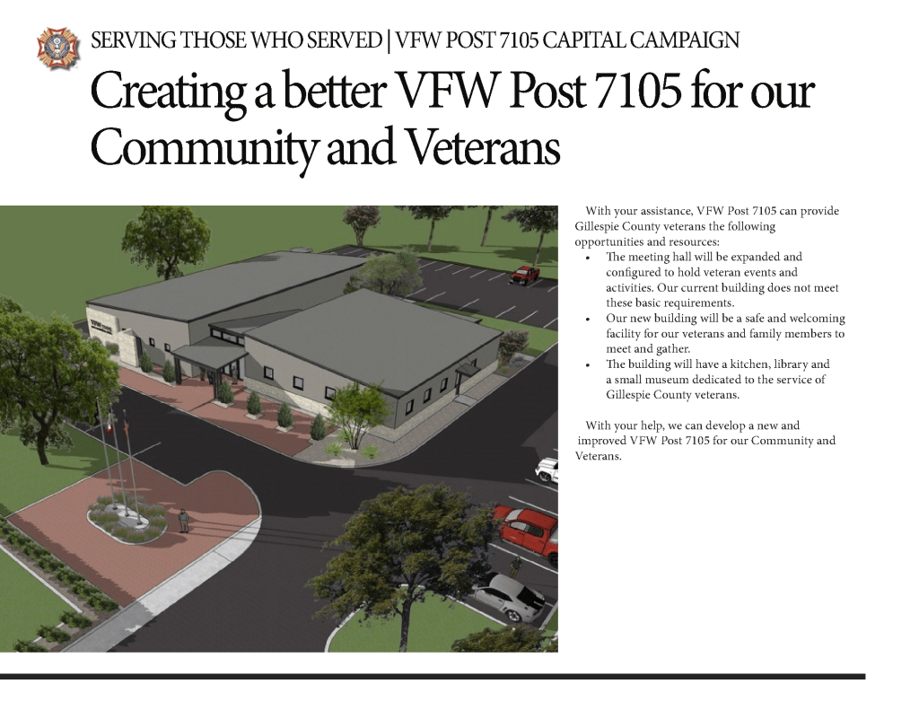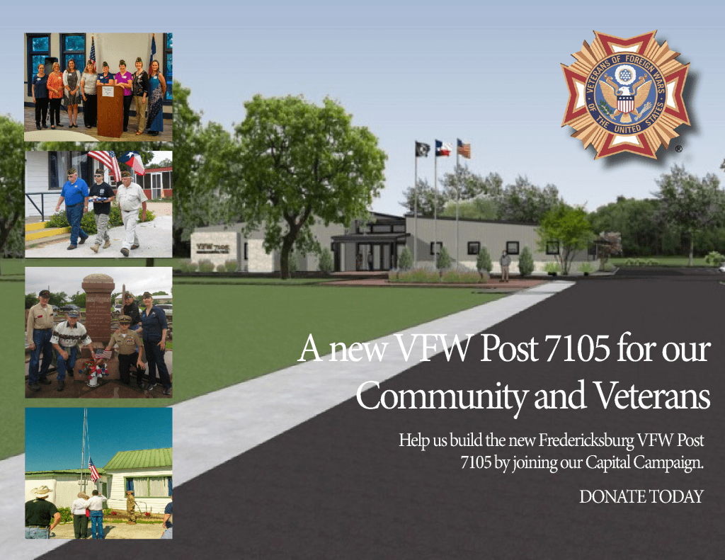 Capital Campaign Donate – PayPal Donate – Zeffy Post Facebook Canteen Facebook Commander: (512) 517-4211 VFW Post 7105, PO Box 952, Fredericksbrg, TX 78624 Share this: Click to share on X (Opens in new window) X Click to share on Facebook (Opens in new window) Facebook Like Loading...